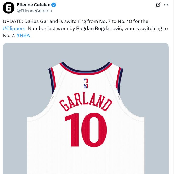 目前他已经确定在快船将继续穿着他熟悉的10号球衣,原本穿10号球衣的博格丹改穿7号。