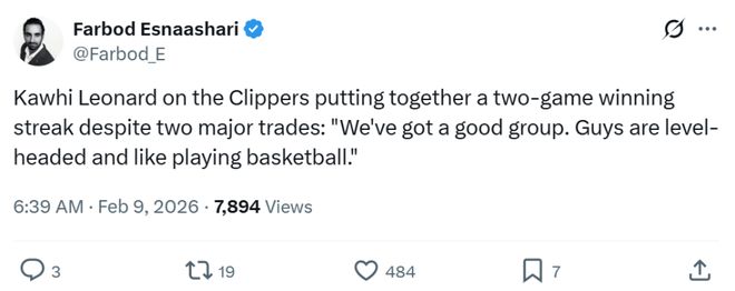 自从19年加入快船以来,小卡目前是唯一还留队的球员,因此他自然被问到是否还想留在这里,小卡说道:“是的,我现在满脑子的想法就是如何完成这个赛季,这是我的主要目标。”