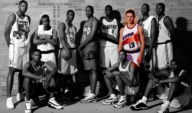 好了,这就是这张经典照片上所有的11名球员,有人可能就奇怪了,为何这一届新秀里最重要的人,状元秀阿伦-艾弗森不在上面?
