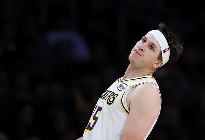本场比赛中,湖人的先发后场大将奥斯汀-里夫斯(Austin Reaves)的表现出现了明显的下滑,令人非常失望。里夫斯全场出场32分28秒,投篮10中4,三分线外4中1,罚球7中6,得到了15分7篮板2助攻2抢断1盖帽的数据,还有1次失误和1次犯规,正负值为-14。里夫斯在进攻端的效率马马虎虎,他的得分能力并没有发挥出来,他的突破能力和投射能力都没有展现出来,他也没有得到太多的分数。除此之外,里夫斯在传球和组织方面的表现也是比较一般的,同样没有起到这方面的作用。里夫斯在防守端的能力本来就非常有限,他也同样没有能力在这方面为球队提供更多的支持。总体来看,里夫斯在本场比赛中的表现非常失常,这也是球队竞争力严重不足的关键因素之一。