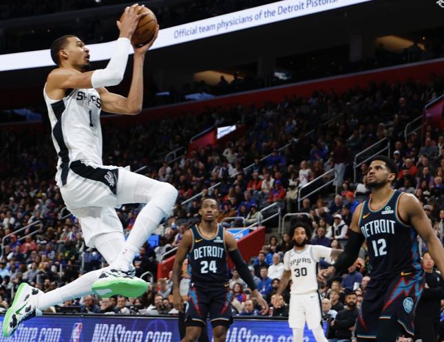 马刺这边文班亚马攻防两端则展现出火热的表现,贡献21分17篮板6盖帽的全能数据,其中末节拿到11分6板4帽统治了攻防两端。此外,文班亚马身边的瓦塞尔迎来爆发,三分11中7拿到28分,一人命中的三分球就和活塞全队一样多;尚帕尼17分,福克斯16分11助攻。