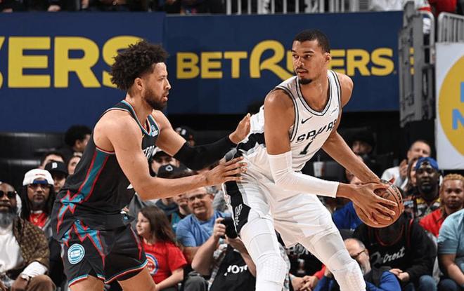 NBA常规赛,活塞坐镇主场迎击马刺,强强对话一触即发。本场比赛之前,马刺40胜16负排名西部第2,不知不觉,马刺近期迎来一波8连胜,尽管阵中球员都非常年轻,大多都不具备季后赛经验,但今年的他们绝对是有争冠机会,当家球星文班亚马超进化,比赛中攻防一体,又迎来了福克斯的辅佐,两人配合已经天衣无缝,马刺还有卡斯尔,哈珀等一众天赋爆表的年轻球员。另一边的活塞队,本场比赛之前,42胜13负排名东部第一,活塞近期也照样迎来5连胜,作为联盟最大黑马之一,上赛季他们还在摆烂,本赛季却要争冠。