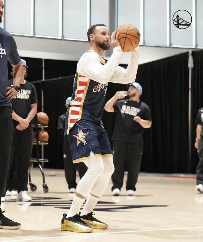 此前库里便上脚过克莱的KT 11和欧文的KAI 3,全明星期间还上脚了克莱的特别版KT 11。