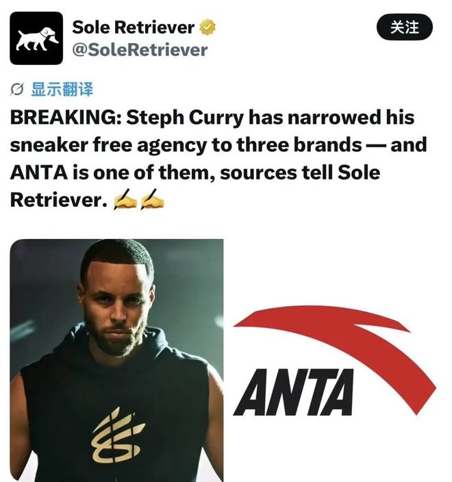近日Sole Retriever独家报道,库里已将球鞋合作目标缩小到三个品牌,其中就有安踏!