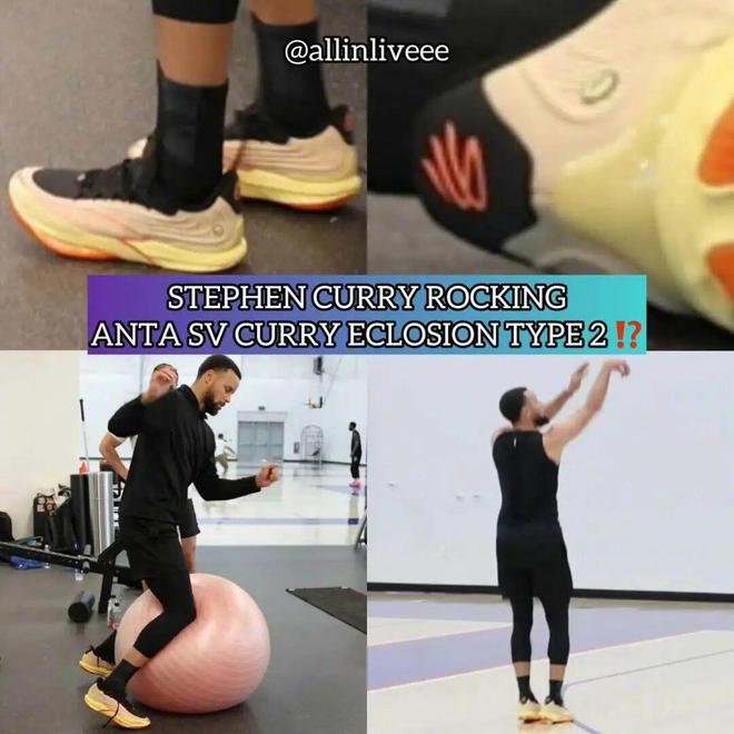 库里在训练中上脚的是安踏SV Eclosion Type 2,此前库里在比赛中也上脚过未发售的Eclosion Type2。