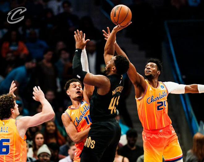 值得一提的是,双方本场均为背靠背作战。黄蜂上一场刚刚惜败火箭,今天却依然保持了极高的竞技状态,全场轰出56记三分出手,命中20球,延续了典型的“魔球”风格,他们大量依赖外线投射,一旦手感在线,便能瞬间改变比赛走势。骑士则在外线出手21次命中10球,效率更高,但面对黄蜂这种极端投射打法,防守端天然处于被动。无论哪支球队遇到魔球体系,都很难完全限制对手,只能通过干扰、轮转和体能消耗来尽量降低命中率。克尼佩尔成为骑士防线的最大难题,他手感火热,几乎无解。好在骑士在内线拥有明显优势:尽管莫布里因背靠背缺阵,但阿伦依然扛起单塔重任,在禁区翻江倒海,多次完成强硬终结与二次进攻,首节骑士便建立起10分领先优势。