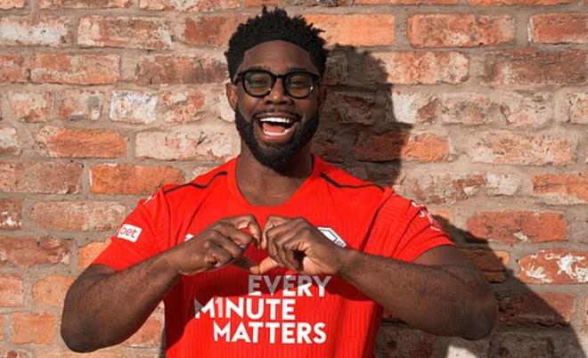 为心脏健康月做宣传,理查兹、迪福等前英超球星做出爱心手势