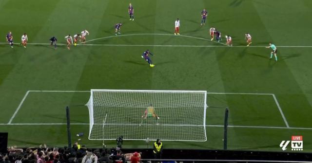 亚马尔主罚点球时,有赫罗纳球员提前进入禁区。