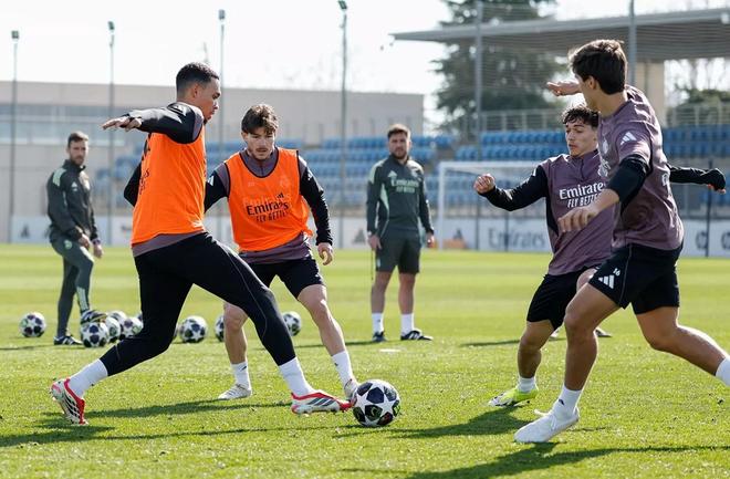对阵奥萨苏纳的首发球员在皇家马德里训练基地的健身房进行了恢复训练。其余队员则先在球场上进行了热身和传球练习。之后,他们进行了跑步训练和位置感训练,并练习了射门技巧。训练最后以一场小场比赛结束。罗德里戈参加了全队训练,而米利唐和贝林厄姆仍在进行恢复。